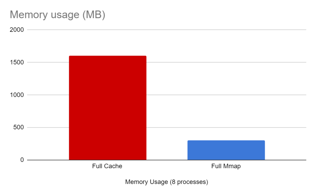Not only is the mmap configuration faster, but it also uses way less memory. Thanks to the memory sharing by the mmap.