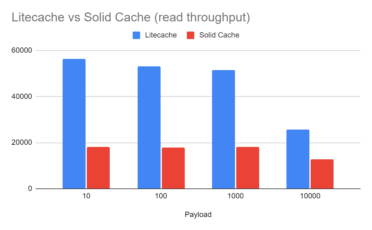 We will look at how both solutions, Litecache and Solid Cache with SQLite perform various read/write operations with different payload sizes.