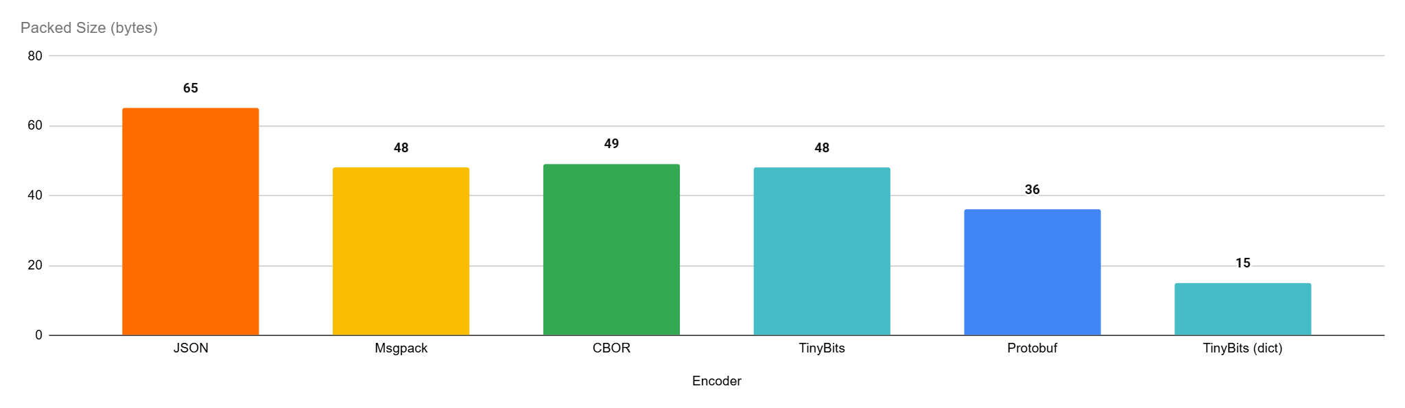 | Encoder | JSON | Msgpack | CBOR | TinyBits |