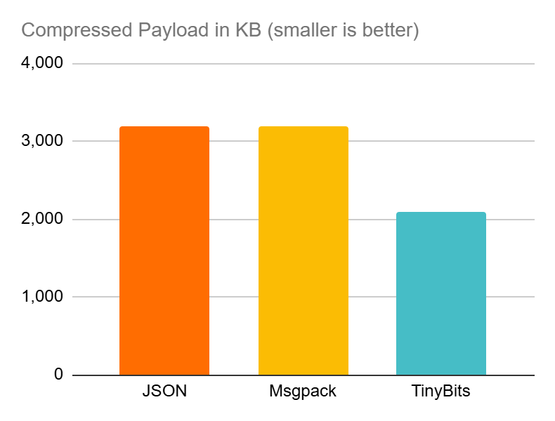 Whether you have large payloads with repeated keys/data, or you have small payloads with known keys (or data), TinyBits got your back. Offering fast, memory efficient and space efficient serialization for any data you throw at it. Here’s where it shines: